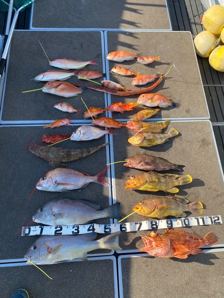 今日は5名のお客様で出港しました。潮の動きが悪かったので真鯛はあまり釣れませんでしたが根魚の型が良かったです。
